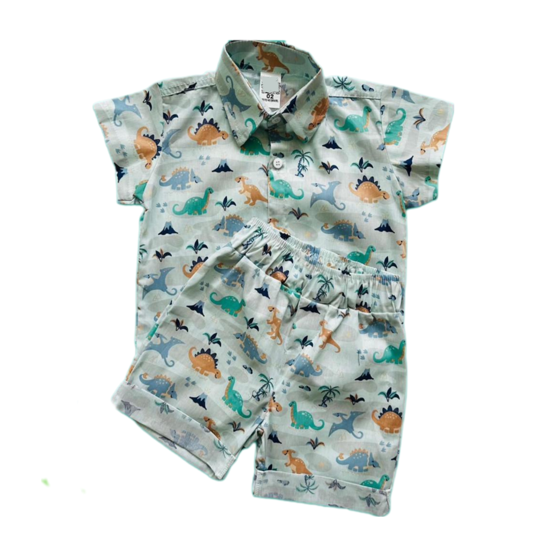 Conjunto Estampado Masculino em Tricoline 100% algodão da Coleção Dinossauros - Perfeito para os pequenos exploradores!